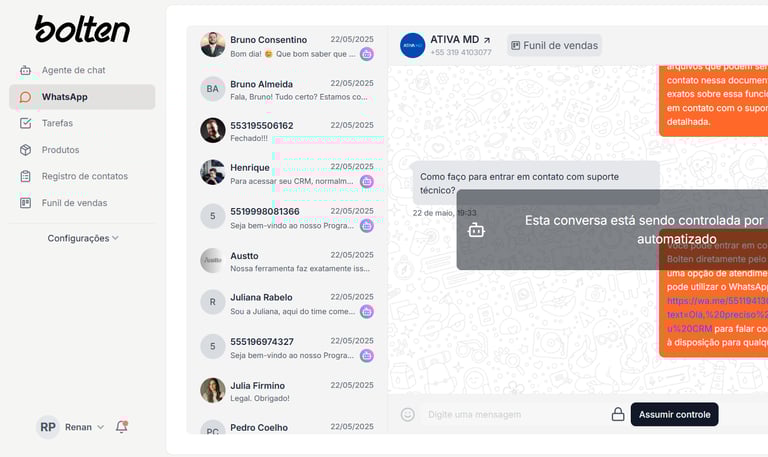 A equipe da Bolten presta suporte aos seus clientes via chat no site. E se precisar de ajuda, você pode acionar nosso time a qualquer momento pelo WhatsApp.